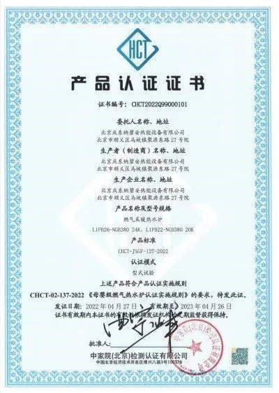 融合了多种母婴友好级技术,L1PB26-NGB380 24K在舒适恒温、安全耐用等方面都能够满足母婴群体的需求,因此通过了由中家院(北京)检测认证有限公司与中国家用电器研究院环境与健康相关产品检测所联合制定的CHCT-02-137-2022《母婴级燃气热水炉认证实施规则》,获得了2022年首张母婴级燃气热水炉认证证书。
