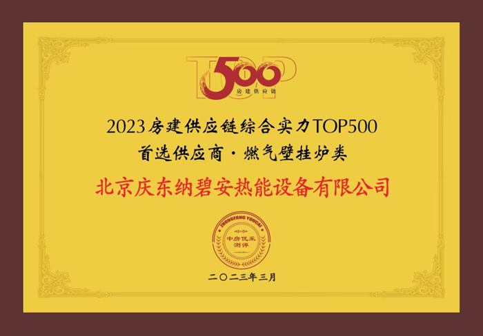 庆东纳碧安入选房建供应企业综合实力TOP500燃气壁挂炉类